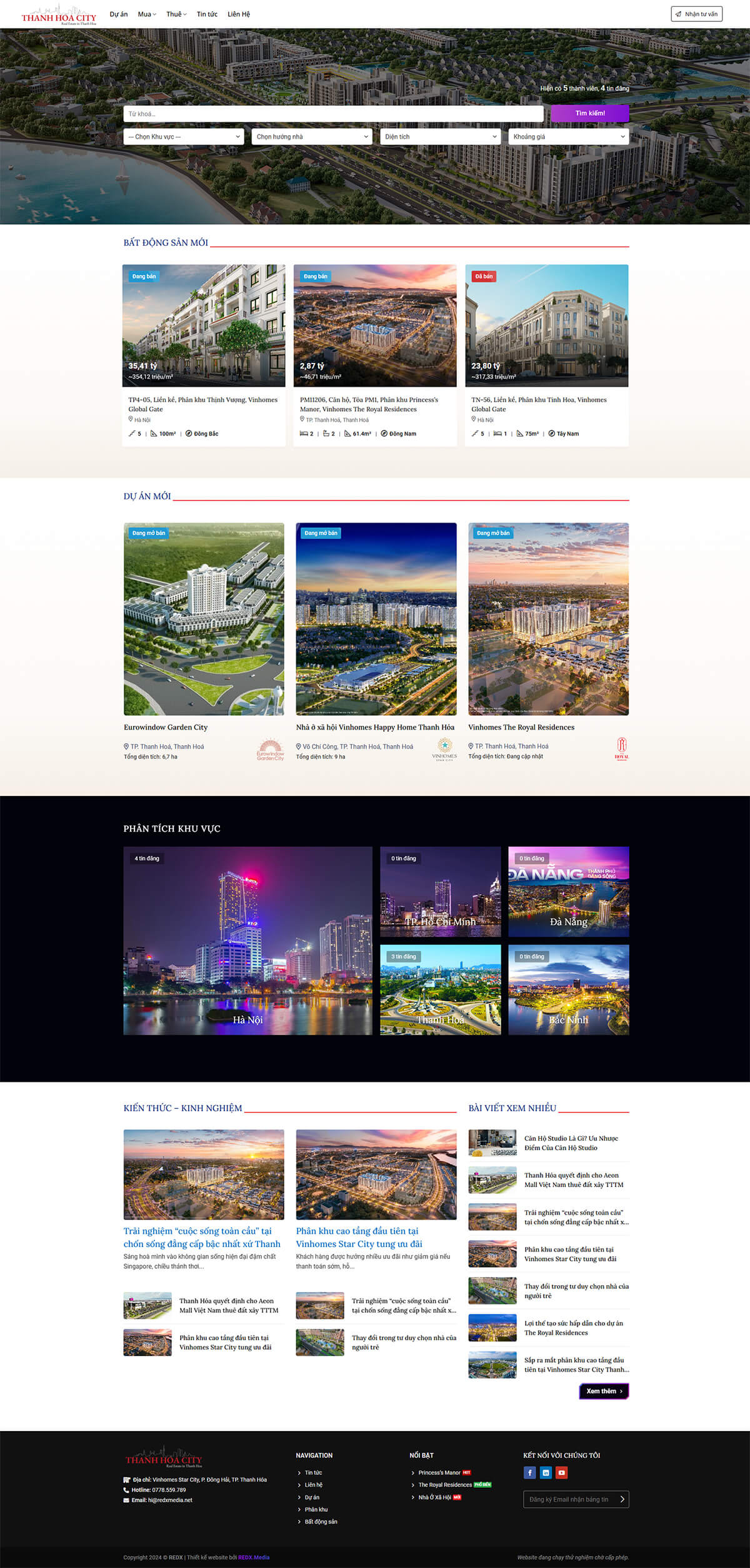 Real Estate Market – Mẫu giao diện Website Bất động sản nhiều dự án, chi tiết bất động sản